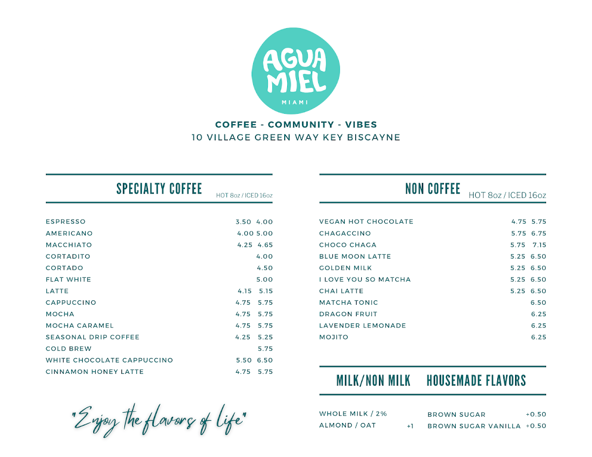 When you're craving something fresh and exciting, the Aguamiel Miami Menu is the perfect place to start. Nestled in the heart of Key Biscayne, just off 10 Village Green Way, this spot is all about vibrant flavors that transport you straight to the heart of Mexico. The menu is filled with a variety of dishes that blend traditional Mexican ingredients with modern twists, making each bite an adventure. Whether you're in the mood for something light like a refreshing ceviche or craving a hearty main dish like their mouth-watering tacos, you'll find something that hits the spot. From bold salsas to perfectly grilled meats, every dish is packed with flavor. Don’t forget to pair your meal with one of their signature drinks for the full experience. With such a wide range of choices, there's always something new to try and enjoy.